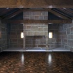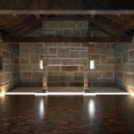 Para la intervención nos queda únicamente el pavimento. Planteamos la idea de llevar la metáfora del lugar y del uso al propio pavimento: el fuego, el cobijo, el calor del hogar…se trata de delimitar perfectamente el lugar de trabajo, de situarlo en otra cota diferente, de no llegar a los extremos para, con un recurso que constructivamente facilita la rehabilitación de los muros, llevar la metáfora del lugar al proyecto. Luego entra en juego el cuidado de los materiales para conformar un conjunto arquitectónico nacido no de la idea de no devolver al edificio a un estado primitivo. La idea de volver a nacer, pero llevando consigo lo aprendido.