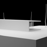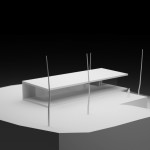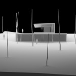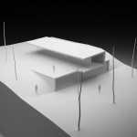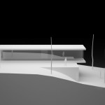 La solución: consistía en dos elementos cruzados: el volumen superior destinado a la zona de día, diáfano, con pendiente a un agua y solo una pequeña caja de aseo que separaba las zonas de estar y salón de la cocina y que contaba con la orientación y las condiciones de lumínicas óptimas para poder introducir un gran porche requerido, y cerrado al norte con un muro ciego de piedra en el que solo se introduce la puerta de acceso a la vivienda; el volumen inferior, con las habitaciones y un pequeño estar-estudio, semienterrado, con una cubierta ajardinada que serviría de zona de transición del volumen superior, con la intención de disimular el importante volumen total de la vivienda y abierto y vinculado a la zona baja de la parcela dominada por una pequeña carballeira.
