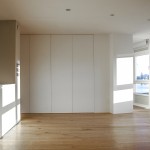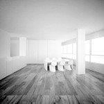 Nos planteamos hacer una «pequeña revolución» respecto al estado actual: tanto el dormitorio principal, como el salón, con la cocina vinculada a este, pero con la posibilidad de independizarla, aprovechan tanto las vistas como la luz de la fachada principal, dejando las zonas más privadas para las habitaciones de los niños y espacios de juego-estudio. Todas las compartimentaciones del piso se realizan bien con muebles o bien con tabiques móviles, posibilitando así el cambio de la configuración del espacio según los requerimientos de cada situación.