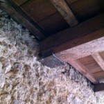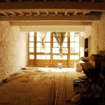 Las soluciones tomadas para la materialización de la idea pasan por ser totalmente reversibles. básicamente, se refuerzan las vigas que lo necesiten con elementos metálicos, se emplea madera de abeto para la franja longitudinal y para reparar el núcleo de escaleras y se pinta de blanco, aportando una necesaria luminosidad, tanto las paredes de piedra como suelos y techos, ya que además es la opción más económica.