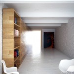 El resultado: un volumen neutro, blanco, luminoso, diáfano, actuando como contenedor de una cajita de madera para las comunicaciones y otra longitudinal que recoge los elementos necesarios para habitarlo.