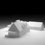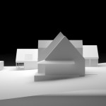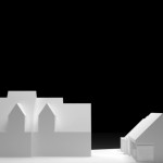 Planteamos solucionarlo como un volumen alargado, discreto, con una cubierta a dos aguas y en una sola altura (salvo la habitación principal que estaría en una altura superior). Pretendíamos que existiera una continuidad espacial en todo el elemento, solo interrumpida puntualmente por el núcleo de baños-almacenamiento consistente en una pequeña caja de madera separando la zonas de día-noche.