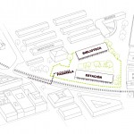 Es por ello que se parte de un espacio-plaza central que sería el centro de los equipamientos ahora mismo inconexos; por una parte se vincula la biblioteca a las zonas docentes adyacentes, y la estación actúa como límite y protección frente a las vías del ferrocarril.