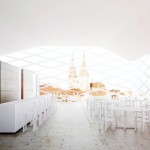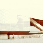 Para ello intentamos conseguir un edificio sencillo, tranquilo y legible mediante tres premisas, elevarlo para evitar las crecidas del río como para generar un uso de plaza-mercado cubierto al servicio de la ciudad, desmaterializar el volumen principal mediante el uso de la luz y de materiales como el aluminio natural, consiguiendo un reflejo difuso de los tonos y colores del entorno que lo envuelve y crear una cubierta transitable que realizará las funciones de una gran plaza pública desde la que poder abstraerse y obtener unas sensaciones diferentes y unas vistas privilegiadas del entorno.