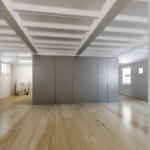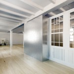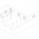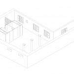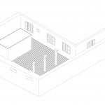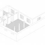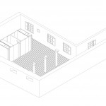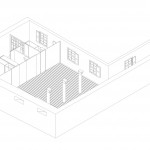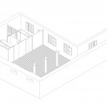 Es por eso que nos planteamos hacer una intervención que sobre todo mantenga la identidad de la construcción existente y además sea flexible; La solución propuesta es una pequeña caja metálica que manipulando parte de sus componentes pueda cambiar la configuración del espacio fácilmente. Existe un núcleo central fijo con las zonas húmedas, que cuando está cerrado puede generar recorridos que satisfagan las necesidades de las diferentes exposiciones que se puedan realizar, mientras que cuando se despliegan las mamparas formadas por carpinterías recicladas existentes en el local, el espacio se transforma adaptándose a los requerimientos de una vivienda tradicional.
